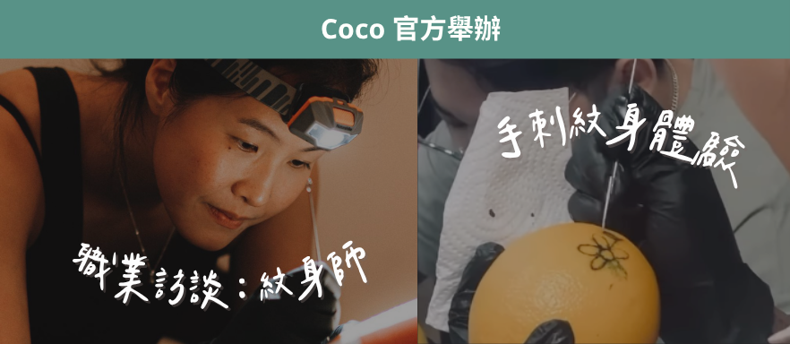 隨著紋身藝術的普及,除了使用紋身機創作大型圖案外,還有一種更細緻且相對少痛的紋身方法——手刺紋身。在這個為期兩小時的工作坊中,參加者將了解紋身及手刺紋身的基本原理,以及一般紋身程序中的注意事項。活動將從設計圖案開始,讓參加者一步一步輕鬆體驗紋身師的日常工作,最終將圖案「刺」在橙皮上。